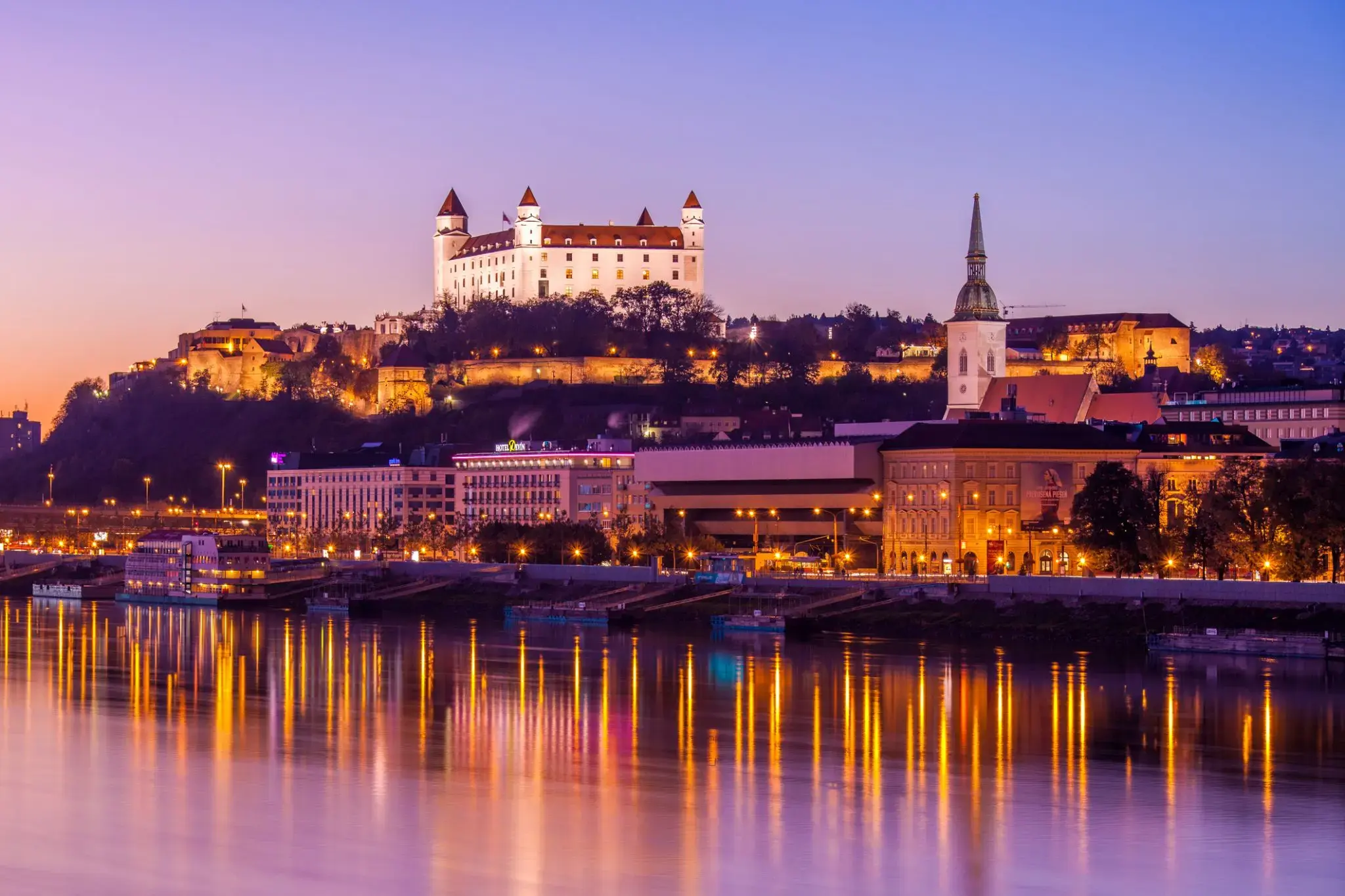Столица Словакии — Братислава, единственная в мире столица, которая граничит сразу и с Австрией и с Венгрией. В свое время здесь проводились пышные коронации, о которых сегодня все туристы могут услышать во время экскурсий по городу. В Братиславе расположено множество музеев, церквей и просто памятных мест, так что дефицита в экскурсиях здесь нет. Приятно, что здесь можно отлично и главное — недорого провести отпуск. Начать знакомство с городом, рекомендуем, с Братиславского Града. Это важнейшее место в городе, на территории этого града расположен исторический музей. Невозможно остаться равнодушным и пройти мимо Голубой церкви, высота которой достигает 37 метров. Чтобы попасть сюда необходимо пройти через мостик на территории бывшего кладбища. Конечно же, это далеко не весь список мест, которые стоит посмотреть в Братиславе, Вас также порадуют собор Святого Мартина, Францисканская площадь, дворец Мирбаха и многое другое.